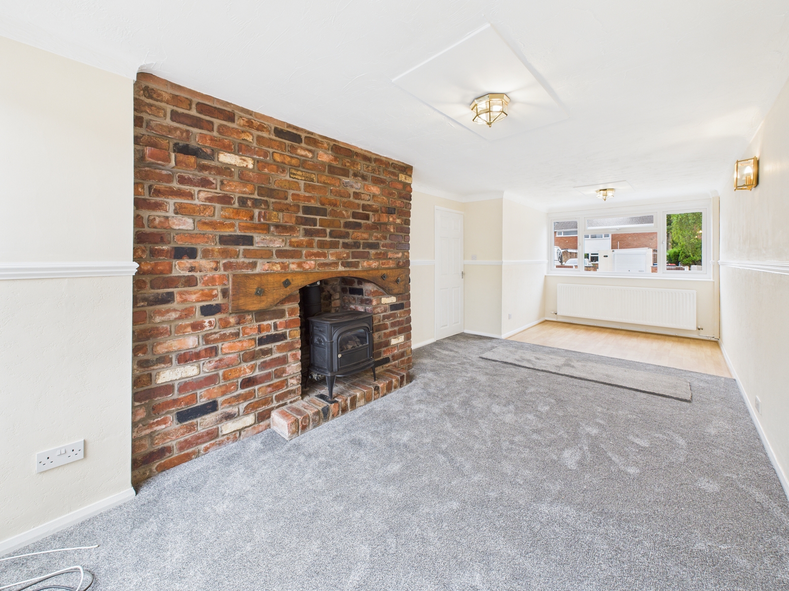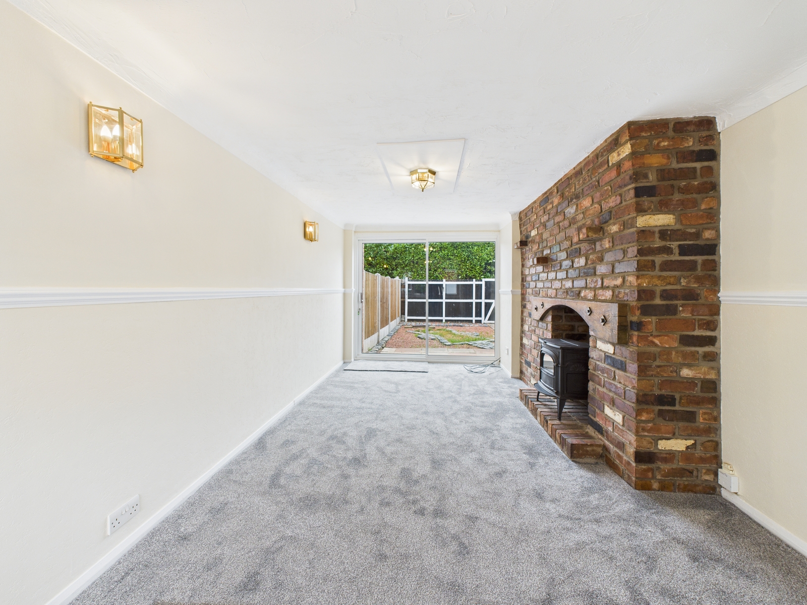 LOUNGE/DINER 8' 7" x 22' 11" (2.64m x 7.01m) The dining area has wood effect laminate floor with the living area carpeted. To the front is a UPVC double glazed window and double glazed patio doors leading to the rear garden. Also a radiator and feature exposed brick wall with recess housing a gas coal fire.